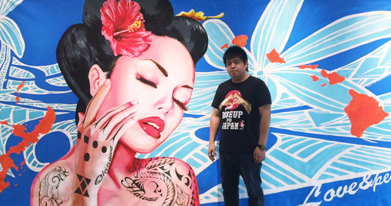 ライブペイントでは島国の文化をテーマに描いた作品
